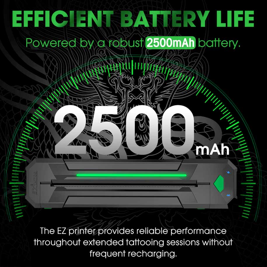 Efficient Battery Life: Powered by a robust 2500mAh battery, the EZ printer provides reliable performance throughout extended tattooing sessions without frequent recharging.