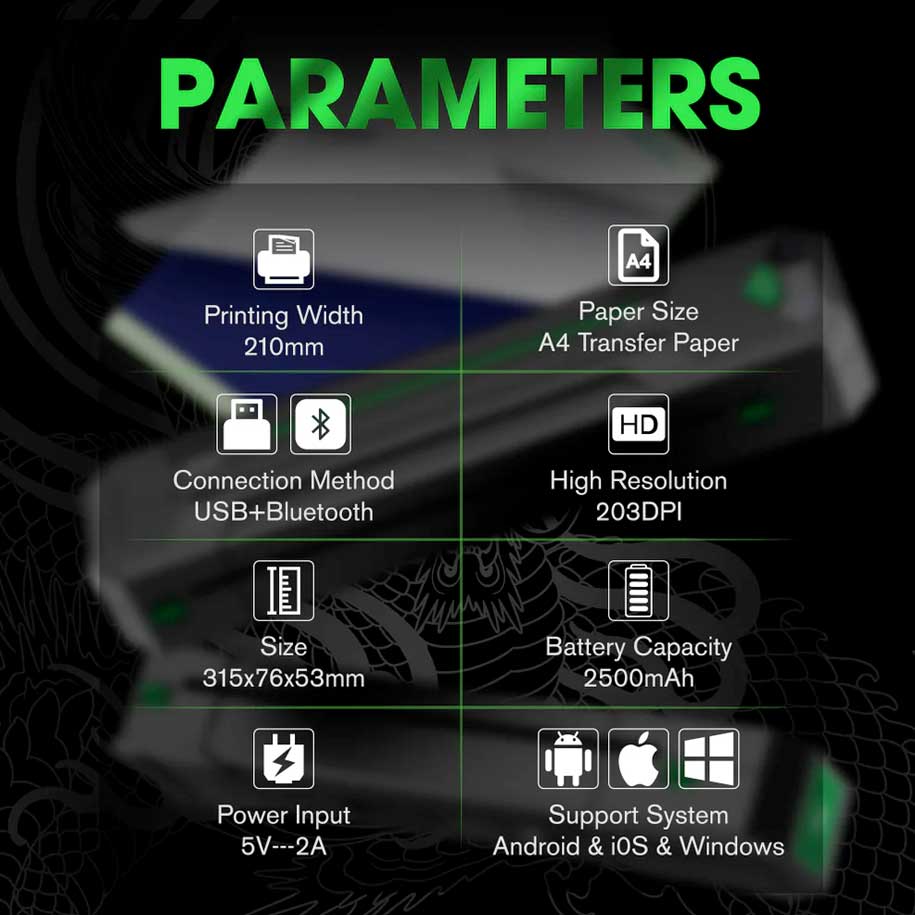 Wireless Connectivity: The printer supports both Bluetooth and USB connections, making it compatible with Android, iOS, Windows, and Mac systems. Seamlessly transfer and print your designs from virtually any device.