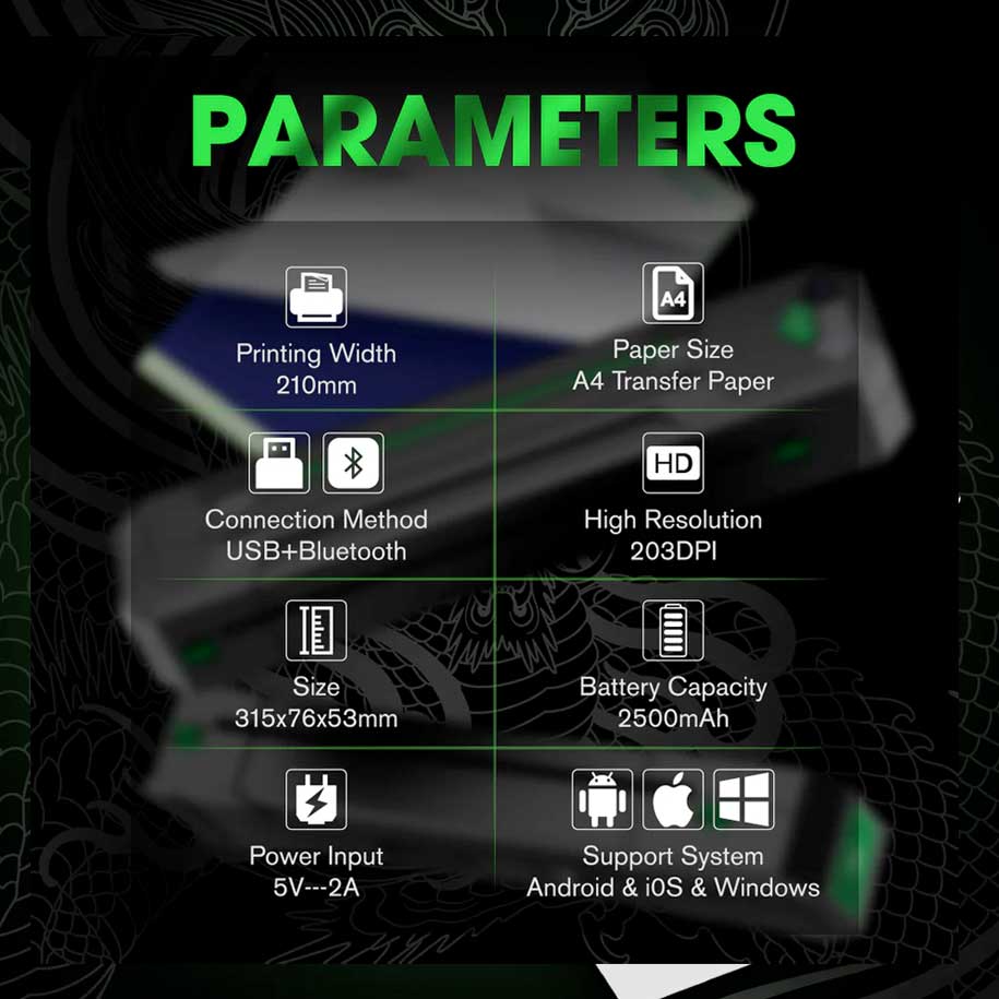Compact and Lightweight Design: This printer is highly portable. Ideal for use in studios, conventions, or on-the-go tattoo sessions.
