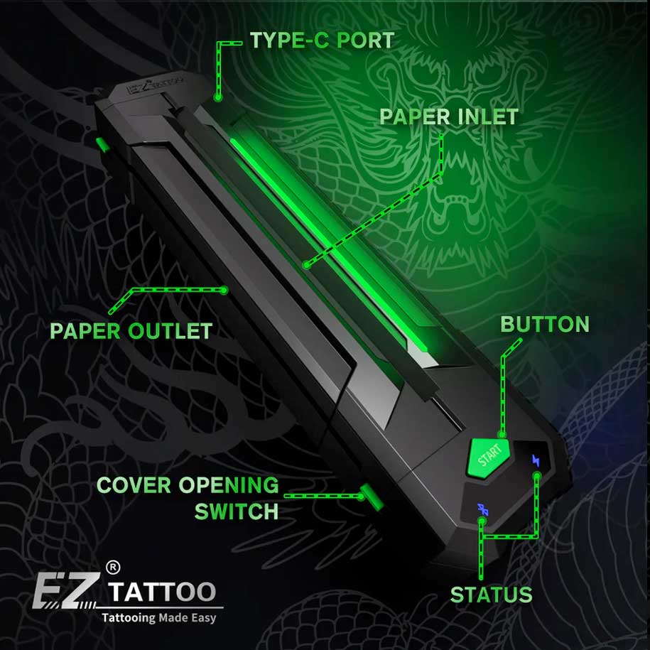 EZ Wireless Tattoo Transfer Stencil Printer, a cutting-edge tool designed for professional tattoo artists who demand precision, efficiency, and portability. This innovative device simplifies the stencil creation process, ensuring flawless results every time.